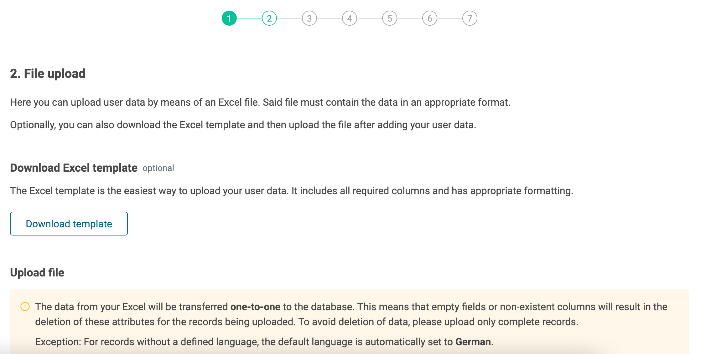 Download our Excel template and fill in the user data. Using the Excel template is the easiest way as the required columns correspond exactly to our system.