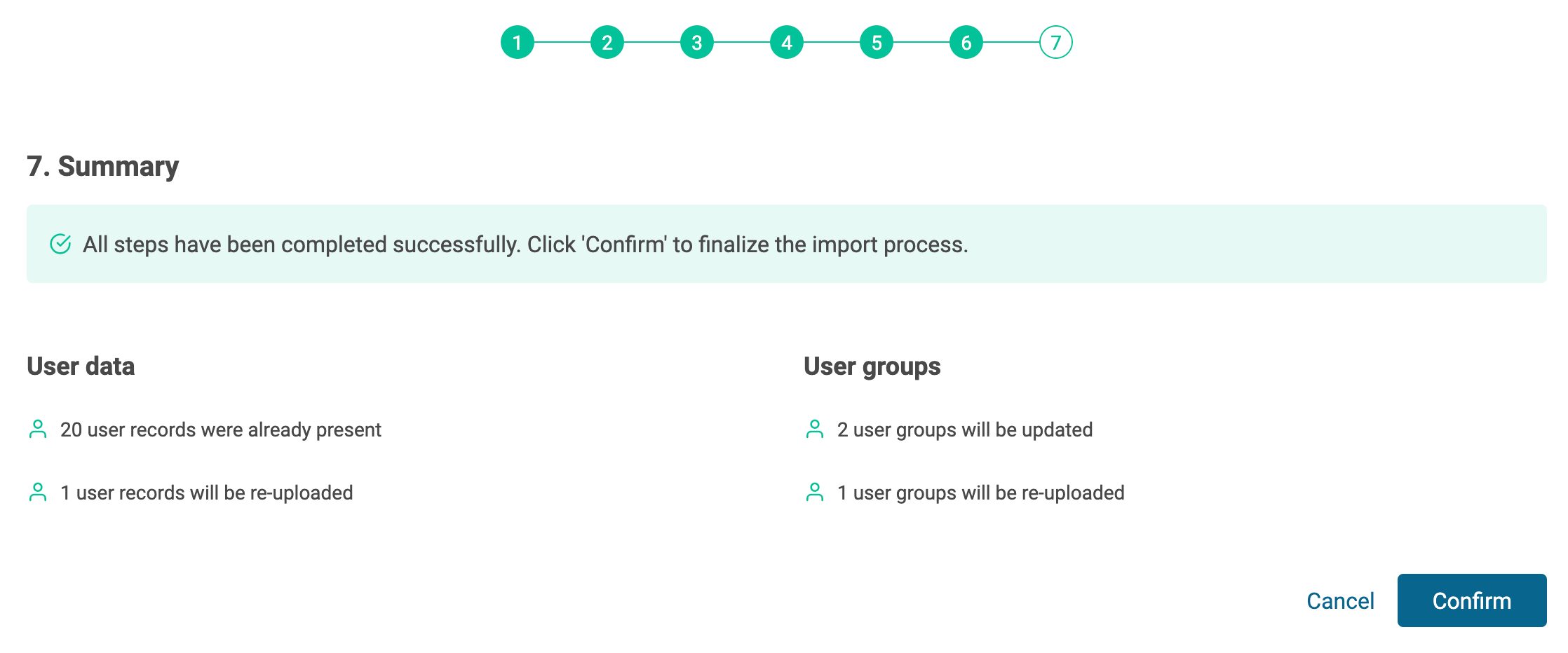 In the final step you receive an overview of already existing and/or newly added user data and user groups.